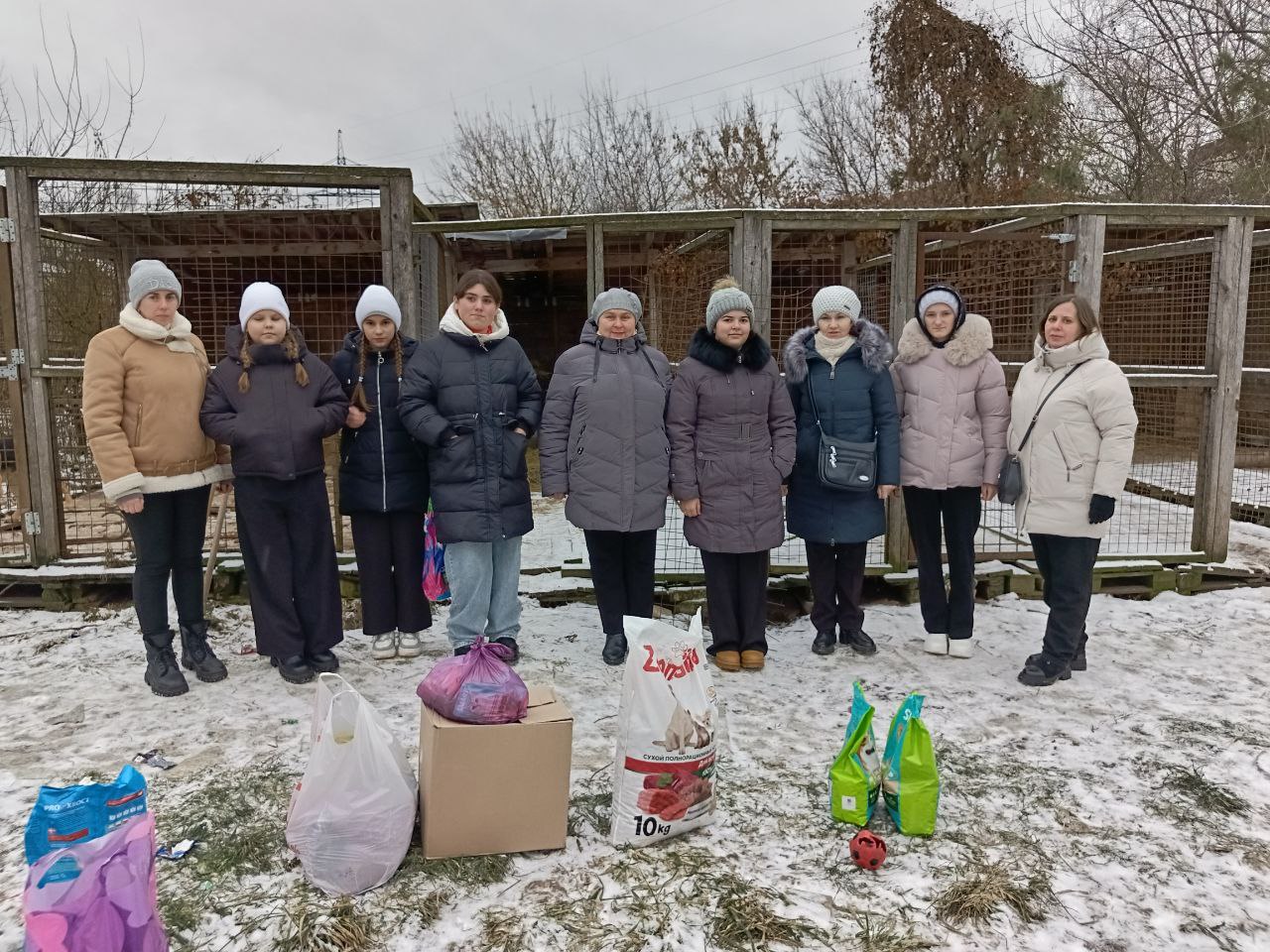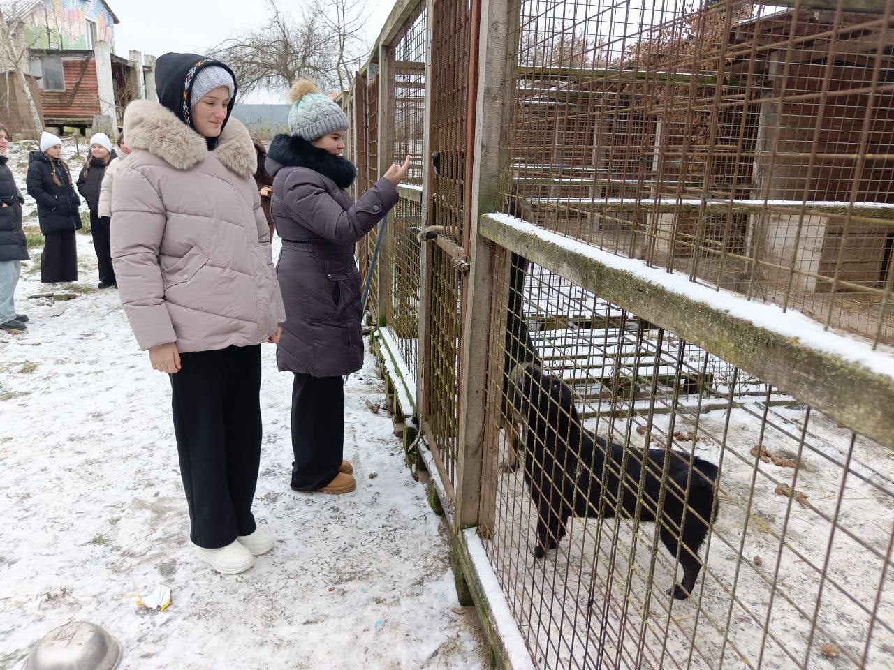 25 декабря 2025 года Гущина Е.Н., наставник #Первых, и Махмудова А., председатель школьной первичной организации, посетили приют для бездомных животных «Кот и пес».
