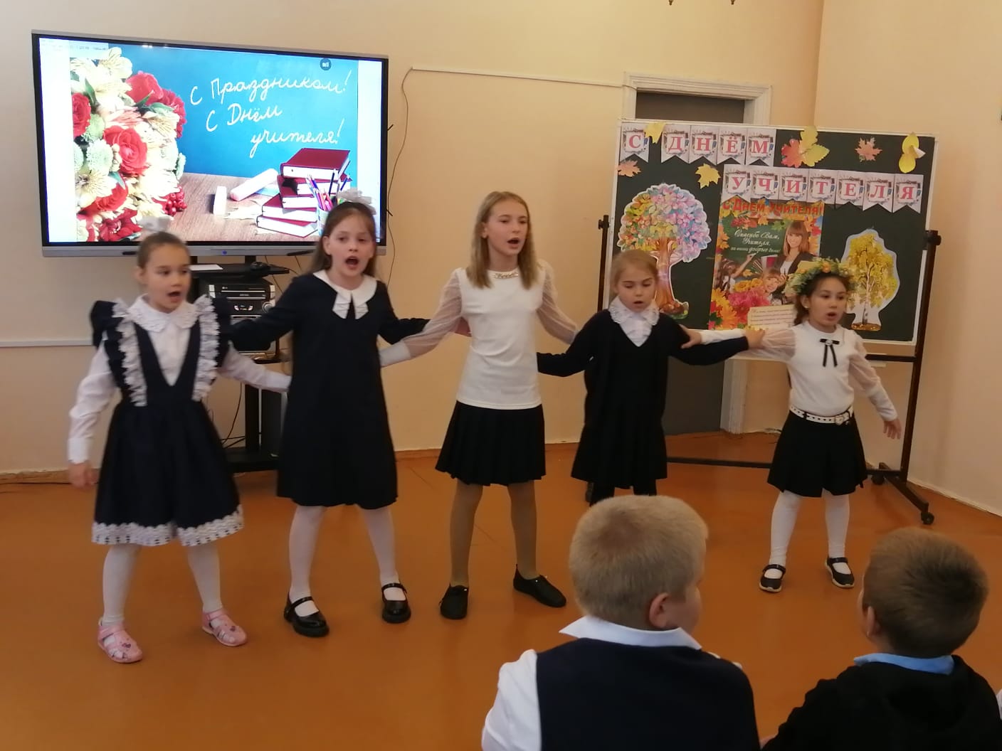 В преддверии Дня учителя в нашей школе прошёл праздничный концерт. Обучающиеся 1-11 классов подготовили для любимых педагогов трогательные поздравления: читали стихотворения, пели песни, исполняли танцы. Кроме того, в сценарий были включены конкурсы и предсказания для педагогов. Праздник прошёл в дружеской атмосфере. Спасибо всем за тёплые слова и пожелания.