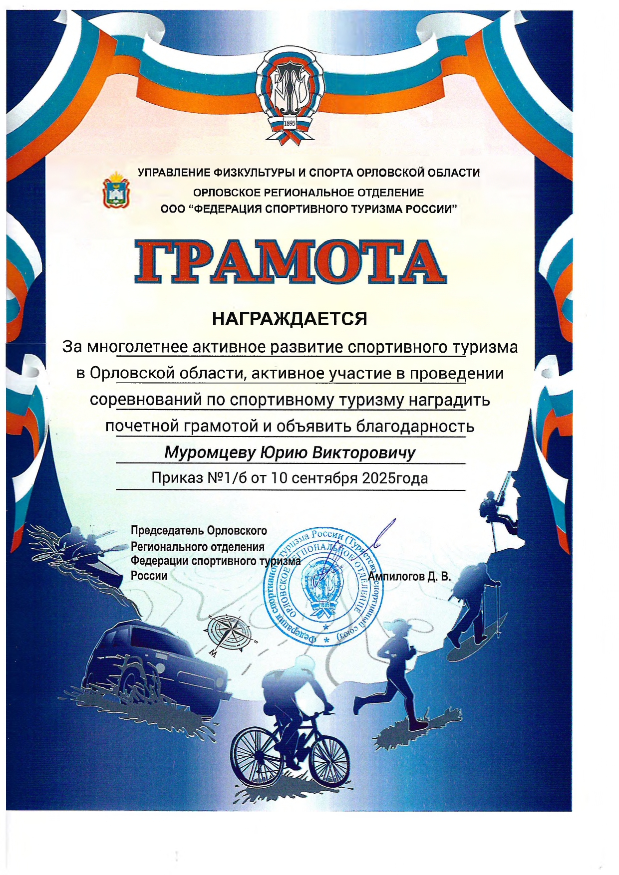 Есть в Орловской области педагоги, которые своим личным примером дают мощный импульс развитию массового туризма. Именно под них нужно писать и корректировать официальные программы в сфере туризма — это горящие и зажигающие других люди, мы гордимся ими и стремимся вслед за ними — «вперед и вверх, а там…».