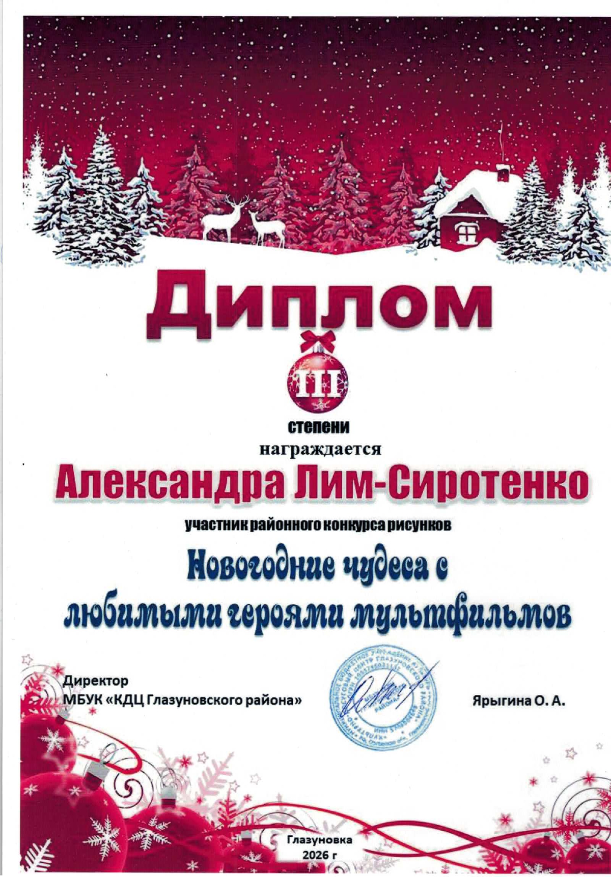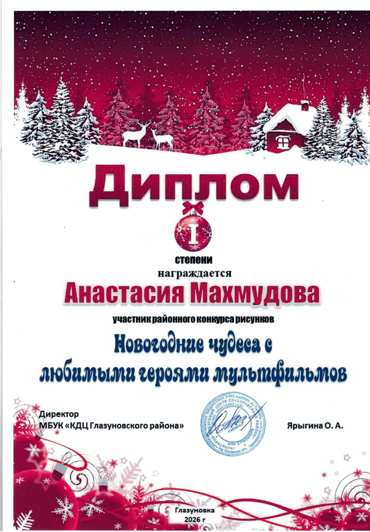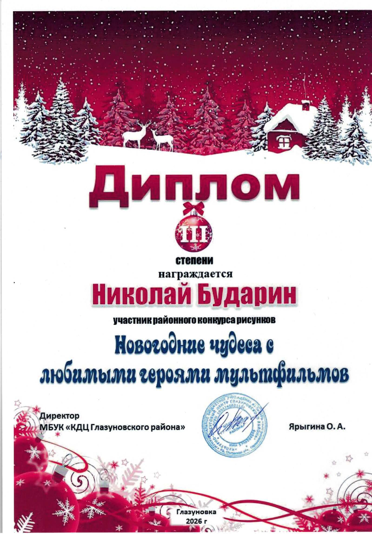 🎉Подведены итоги районного конкурса рисунков «Новогодние чудеса с любимыми героями мультфильмов».