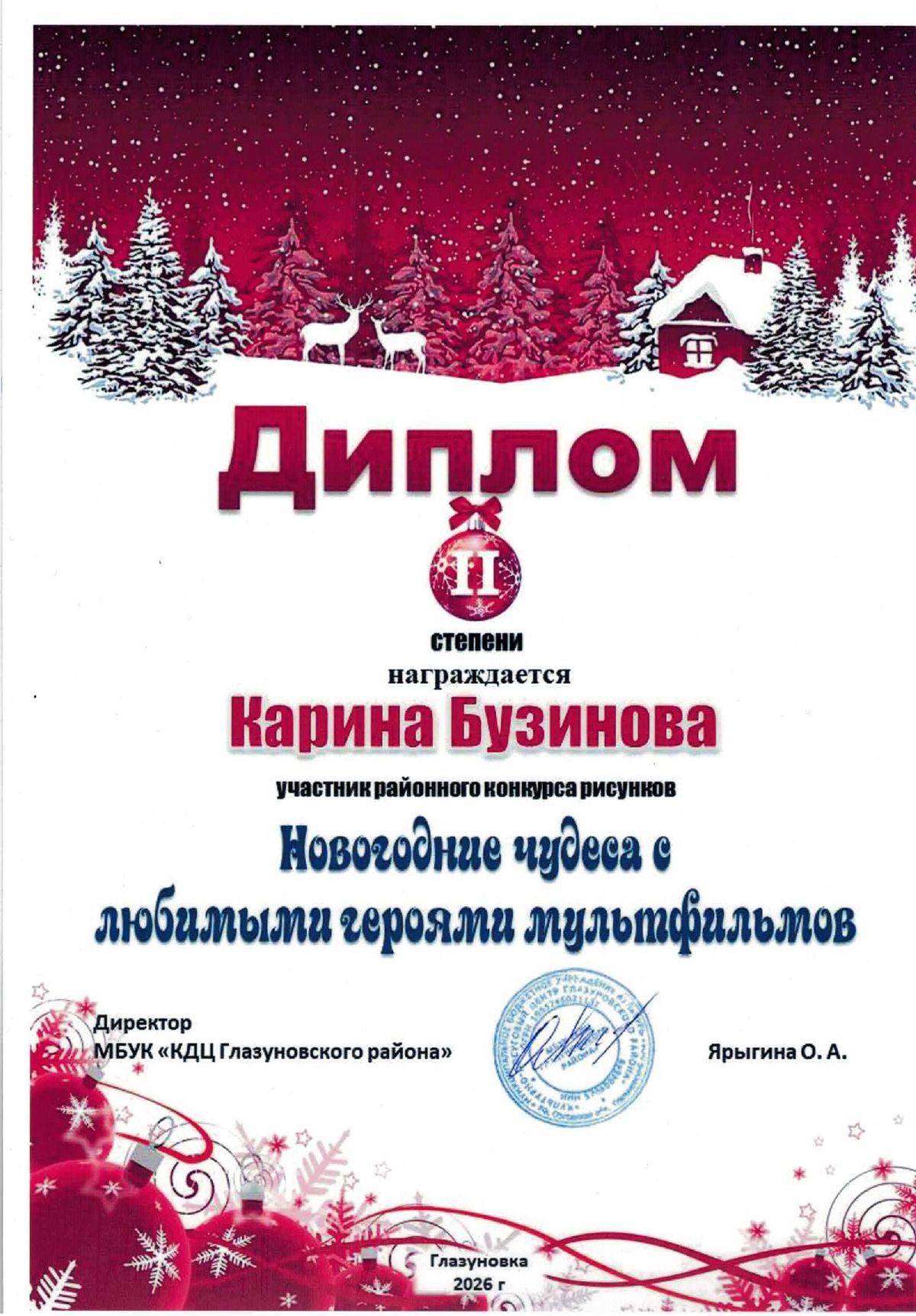 🥈Диплом II степени: Карина Бузинова (2 класс).