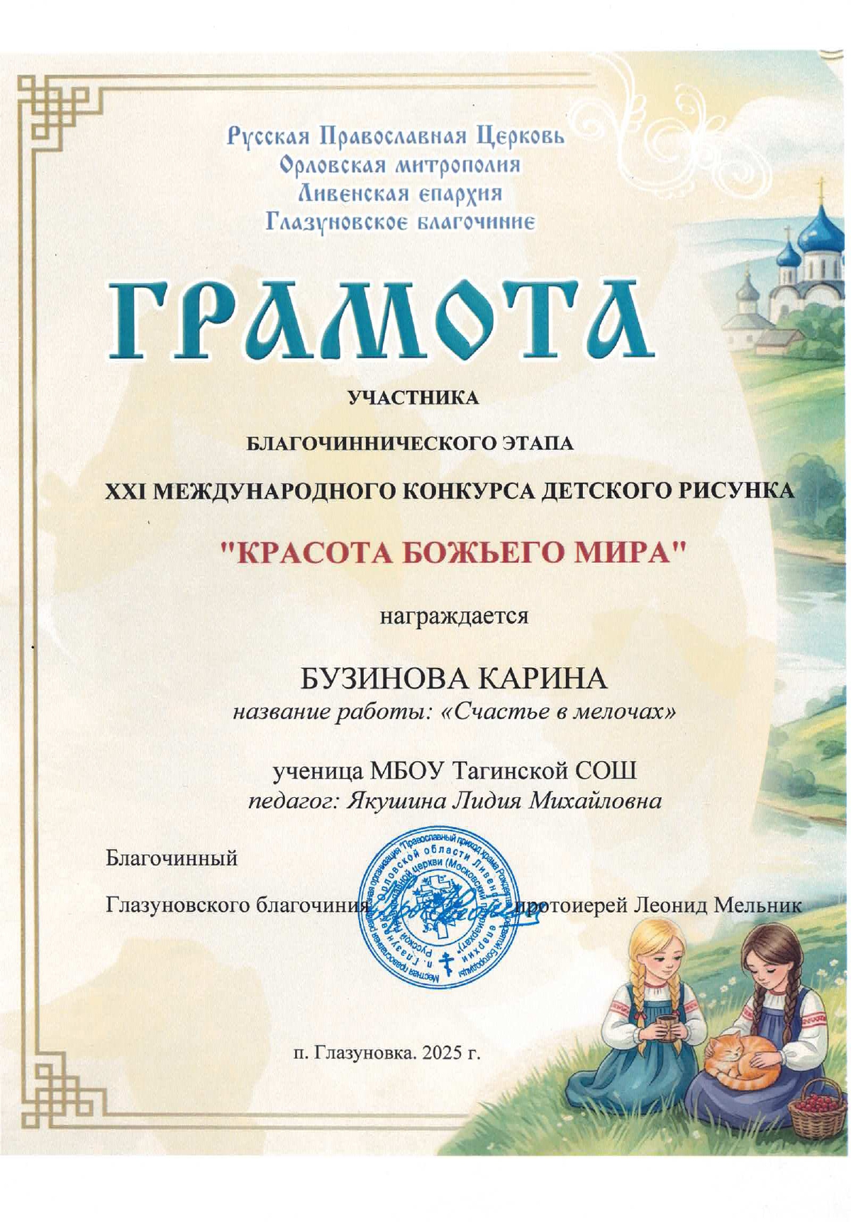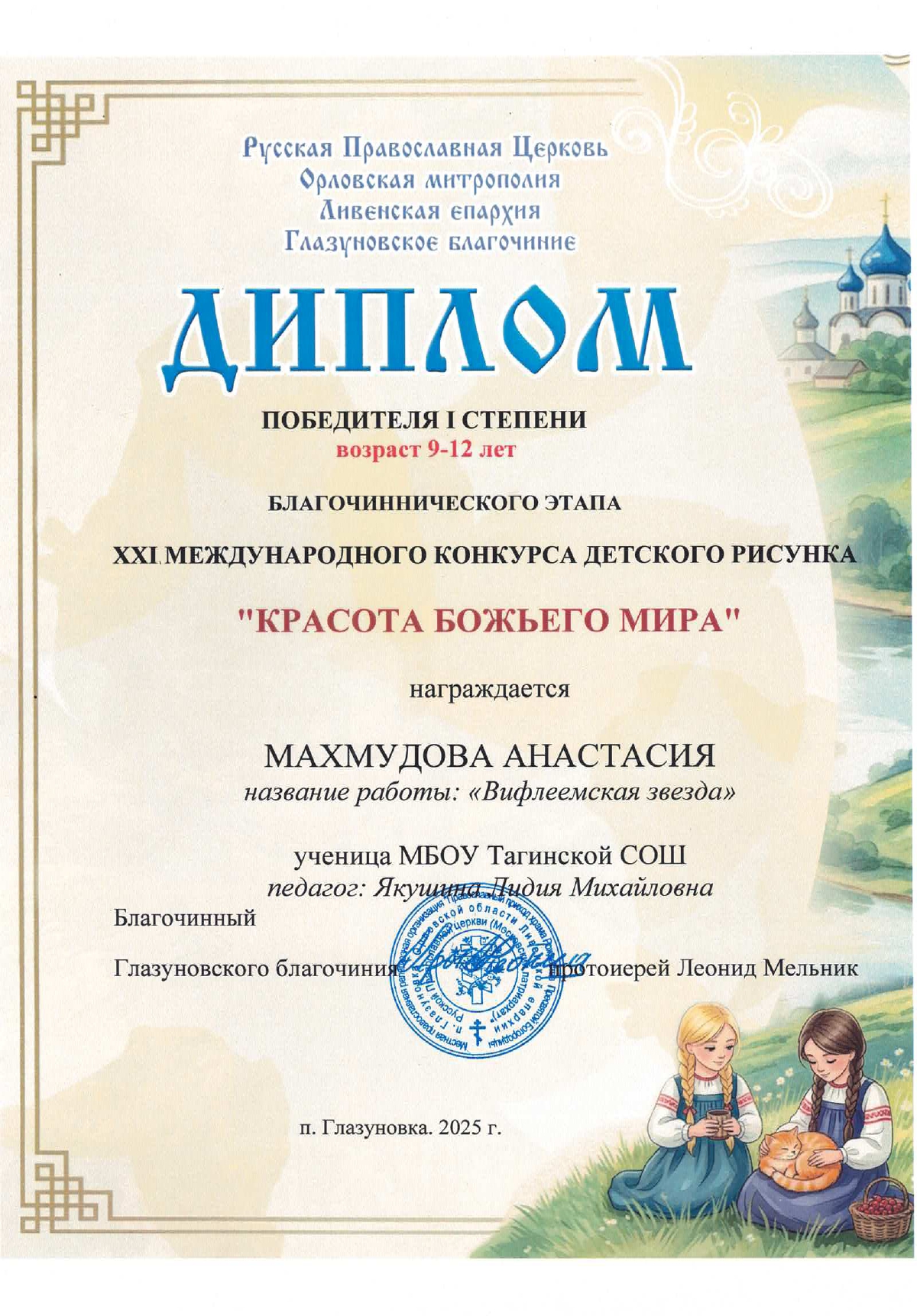 с 1 сентября по 15 декабря 2025 года проводится международный конкурс "Красота Божьего Мира". Ежегодный конкурс детского творчества «Красота Божьего мира» проводится в рамках ХХХIV Международных Рождественских образовательных чтений.